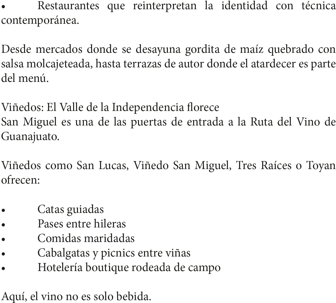 • Restaurantes que reinterpretan la identidad con técnica contemporánea.