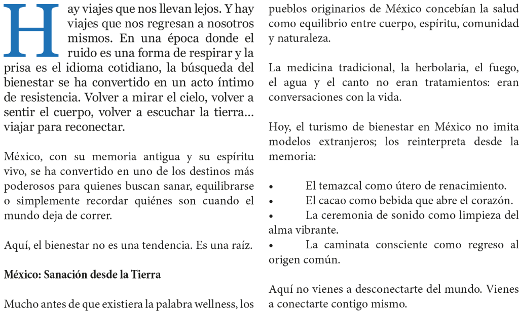 Hoy, el turismo de bienestar en México no imita modelos extranjeros; los reinterpreta desde la memoria: