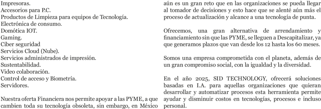 En el año 2025, SID TECHNOLOGY, ofrecerá soluciones basadas en I.A. para aquellas organizaciones que quieran desarrollar y automatizar procesos esta herramienta permite ayudar y disminuir costos en tecnologías, procesos e incluso personal.