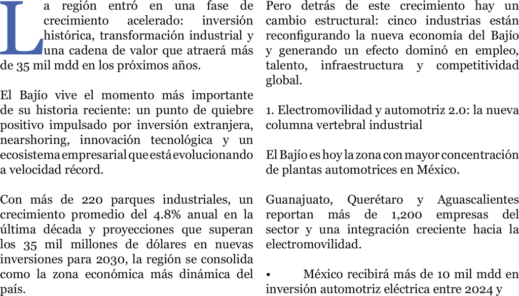 El Bajío vive el momento más importante de su historia reciente: un punto de quiebre positivo impulsado por inversión extranjera, nearshoring, innovación tecnológica y un ecosistema empresarial que está evolucionando a velocidad récord.