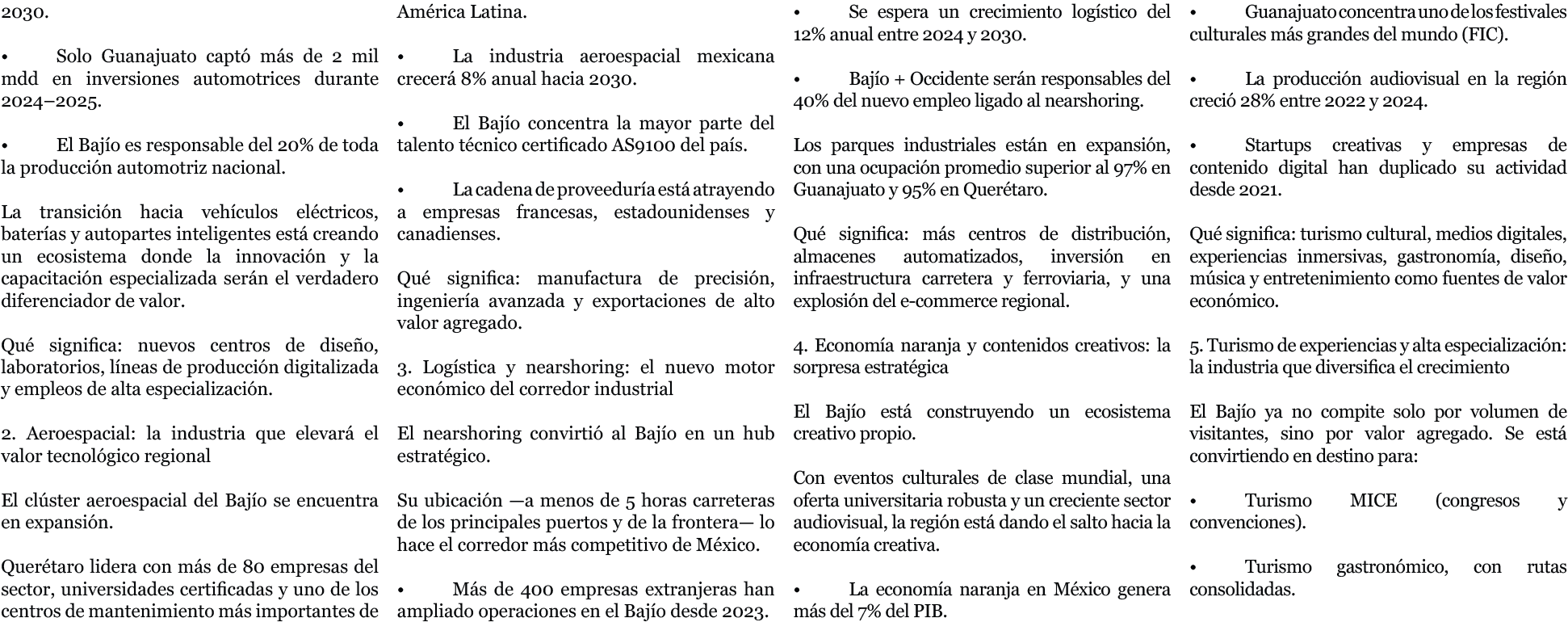 El Bajío está pasando de ser un motor manufacturero a convertirse en un hub de innovación, servicios avanzados y creatividad económica.