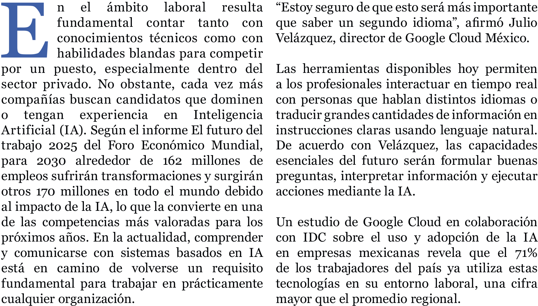 “Estoy seguro de que esto será más importante que saber un segundo idioma”, afirmó Julio Velázquez, director de Google Cloud México.